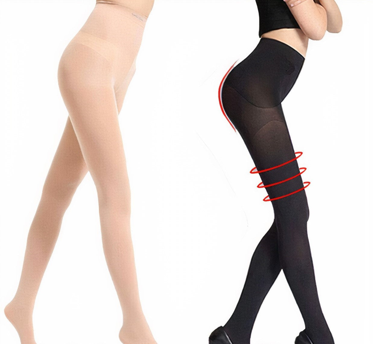 Our innovative slimming stockings will immediately slim your tummy, waist, hips, and thighs, giving you control over them.